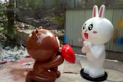 玻璃鋼卡通動(dòng)物熊和兔子雕塑