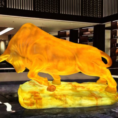 玻璃鋼發(fā)光開(kāi)荒牛雕塑