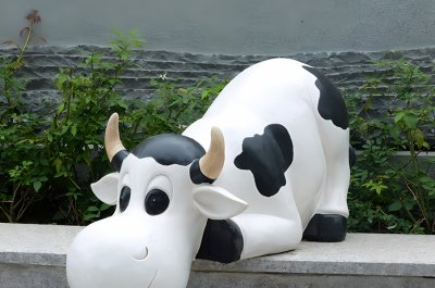 玻璃鋼仿真奶牛環(huán)保桶雕塑