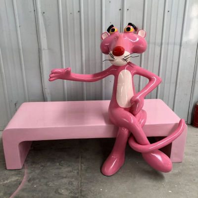粉紅狼玻璃鋼卡通動物雕塑