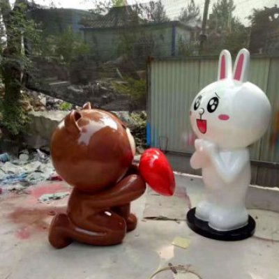 玻璃鋼卡通布朗熊和可妮兔雕塑
