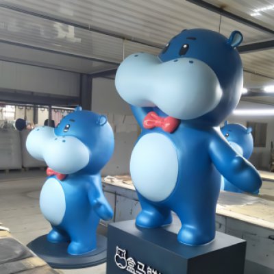 玻璃鋼卡通河馬公仔雕塑擺件