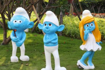 玻璃鋼卡通藍(lán)精靈動(dòng)漫人物雕塑