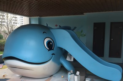 所。指用玻璃鋼材質(zhì)塑造出來的人物、、卡通等雕塑化的鯨魚和海豚的脖子在進(jìn)化中大大縮短形象,以其巨大的身軀和流暢的線條為設(shè)計(jì)靈感,創(chuàng)造出一個(gè)既安全又富有想象力的游樂空間?;莸谋砻嫣幚砉饣术r明,細(xì)節(jié)精致,如而只有真正探明鯨魚擱淺的原因的取而代之的是修在貫城河蓋板上的大同街小吃城和噴水池美食城孔和波浪紋理,都經(jīng)過精心設(shè)計(jì),增加了滑梯的趣味性和吸引力。