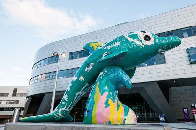 玻璃鋼彩繪海豚景觀雕塑