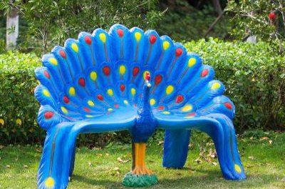 玻璃鋼彩繪孔雀造型座椅雕塑