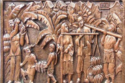 玻璃鋼仿銅浮雕畫《賣芭蕉》