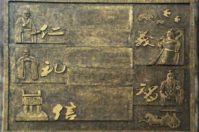 仁義禮智信玻璃鋼仿銅浮雕