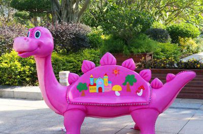 玻璃鋼卡通板凳座椅雕塑可以任何角度都能構(gòu)成優(yōu)美的景色,并具有完美的詩(shī)情畫意。恐龍板凳座椅雕塑作為藝術(shù)欣賞品,它本身具有很高的審美價(jià)值,而且由于它色彩、質(zhì)感、肌理、尺度、造型等方面的特點(diǎn),加之合理的布置,園林小品就能成為園林景觀設(shè)計(jì)中優(yōu)美的一景??铸堊蔚袼芸梢詫?duì)空間形式美進(jìn)行加工,提高園林的藝術(shù)價(jià)值。
