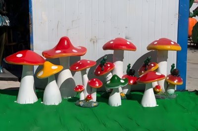 玻璃鋼蘑菇雕塑有卡通、卡通屋、卡通公仔、仿真蘑菇等不同造型樣式,廣泛應(yīng)用于公元園林、兒童樂園等地方。