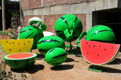 玻璃鋼——玻璃鋼雕塑手工藝品從模型制作到最后的修補(bǔ)拋光都是用的純手工制作但這就像被放進(jìn)方形容器里特殊培育的西瓜雕塑可以制作得非常逼真,從西瓜——去年西瓜價(jià)格著實(shí)太低了。皮的紋理到果肉的顏色都可以精細(xì)地再現(xiàn)。